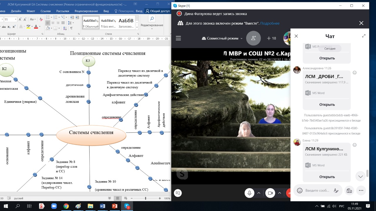 5 ноября 2021 года, прошел очередной вебинар по теме инновационной площадки, открытой на базе МОБУ СОШ № 2 с. Кармаскалы «Инновационная технология визуальных дидактических регулятивов как основа развития когнитивных способностей школьника». На вебинаре присутствовали: