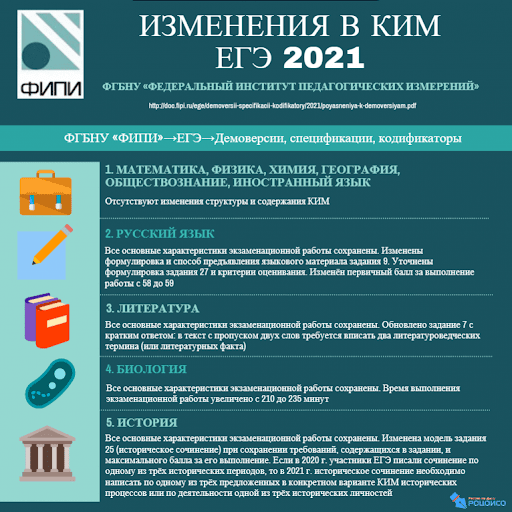 Федеральная служба по надзору в сфере образования и науки совместно с ФГБНУ «Федеральный институт педагогических измерений» проводит видеоконсультации, посвященные изменениям в контрольных измерительных материалах единого государственного экзамена 2021 года.